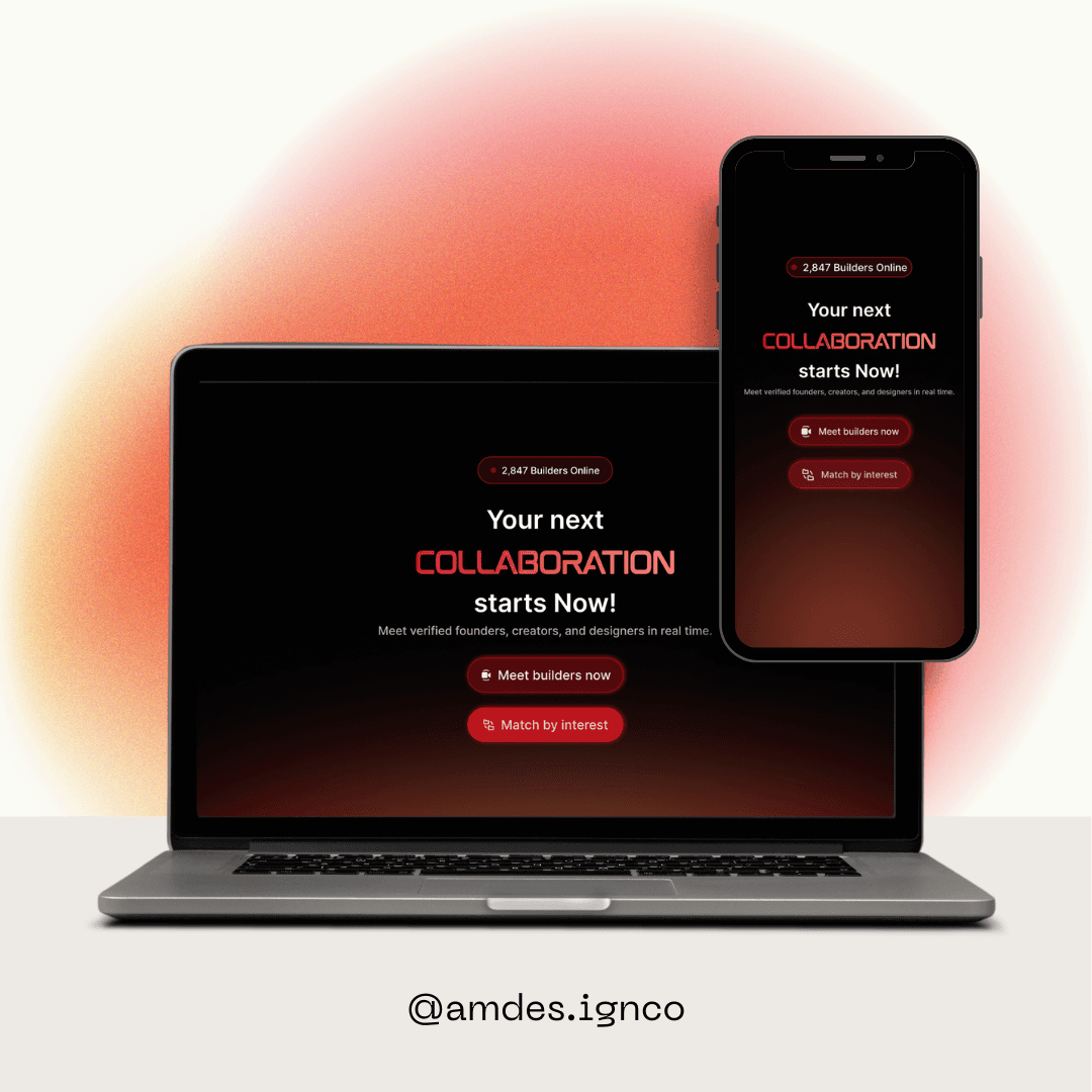 Gen Z builders often struggle to connect with like-minded people in a fast and meaningful way. Existing platforms either feel too formal (like LinkedIn) or too casual and unstructured, lacking depth and intent. The challenge was to design a platform that enables spontaneous connections while maintaining a sense of purpose, comfort, and trust. It required balancing real-time interaction (random matching) with structured identity (profiles), while reducing social anxiety and keeping the experience simple and engaging.